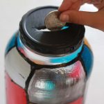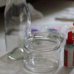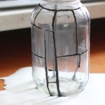 - Draw lines or patterns on the jar with the black glue and let dry. Be careful not to use too much or the lines will run. (This can be cleaned up later with a box-cutter if it does happen.)