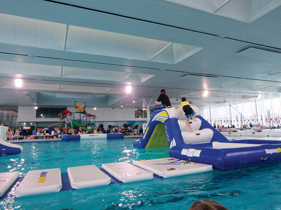 The aquatic centre is large enough to cater for all ages. There are two lap pools, a heated exercise pool, shallow wading pool for the tiny ones, a kiddie pool with water sprays and jets for splashy fun. The centre’s pièce-de-résistance for kids is the impressive water playground complete with slides and big buckets pouring water down onto smiley faces.